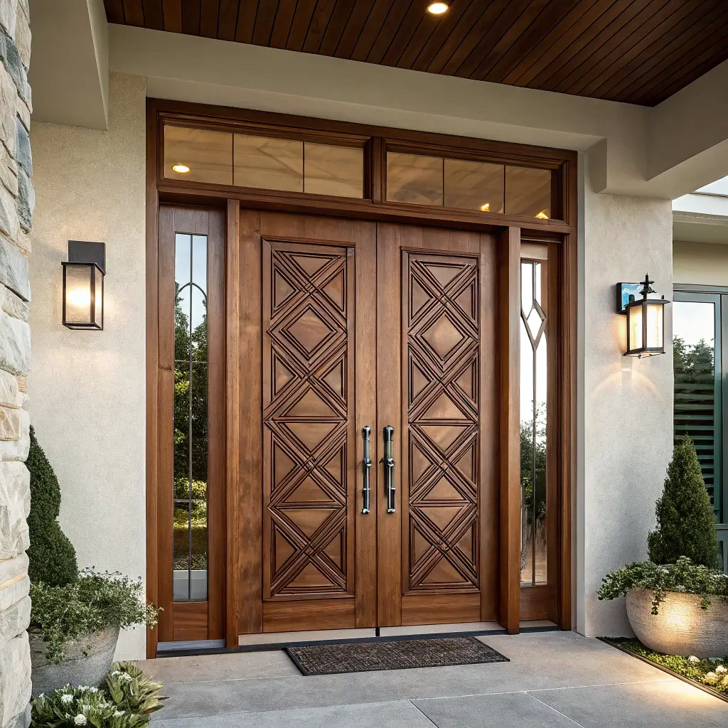 Double Entrance Door with Geometric Patterns