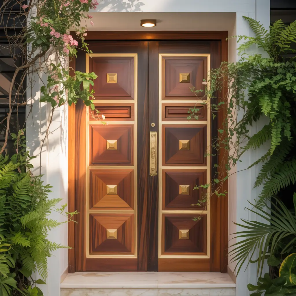 Luxury Teak Wood Door with Brass Accents
