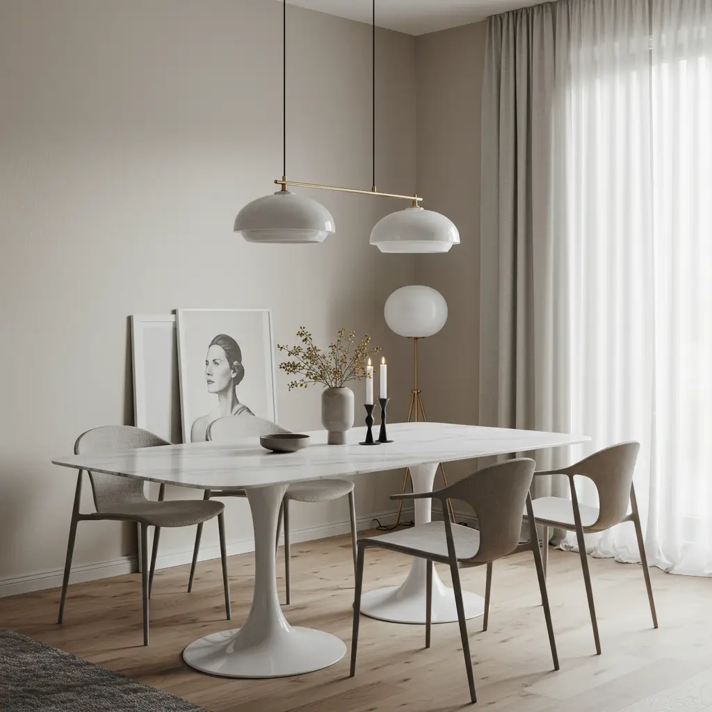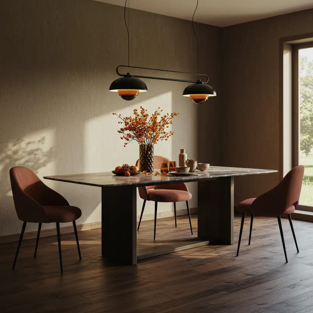 Lighting proportions matter enormously. Your fixture should be roughly one-third the width of your table for visual balance. Hang it 30-36 inches above the table surface to provide proper illumination without blocking sightlines.