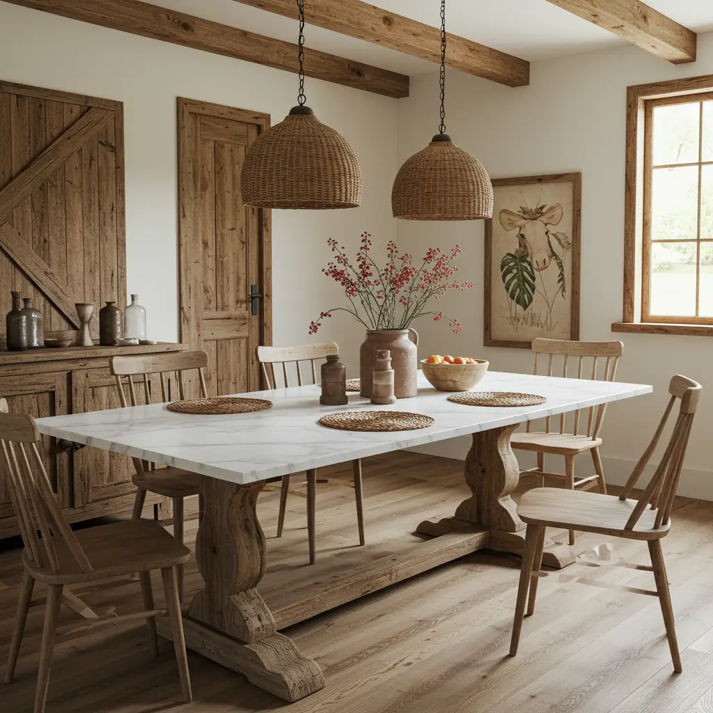 Rustic marble dining tables prove that marble isn’t just for modern or formal spaces. Pairing luxe marble with rough-hewn wood, industrial metals, or farmhouse elements creates unexpected magic.