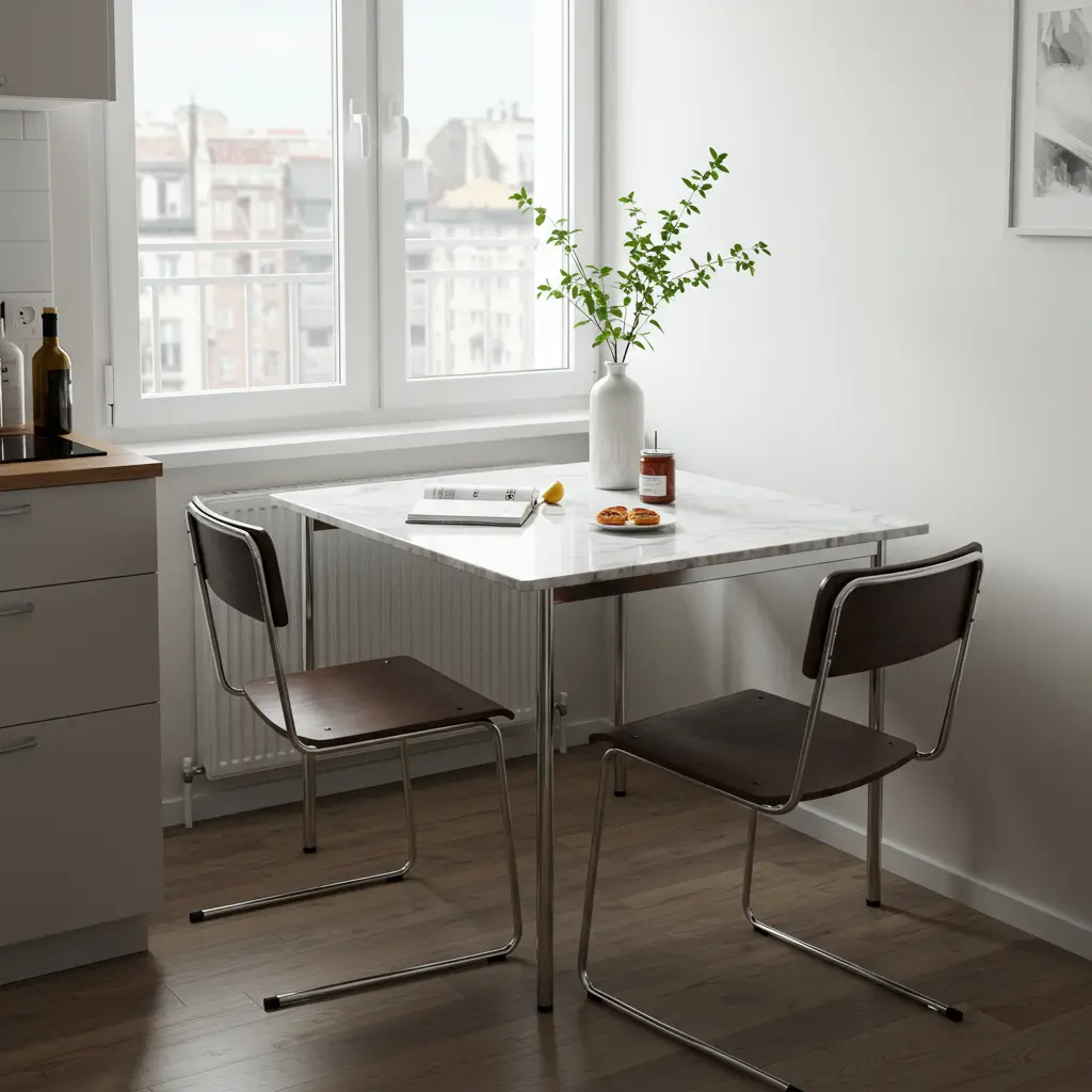 Everything around your small marble table needs to be proportionally correct. Oversized chairs will make the table look even smaller. Choose chairs that fit the scale, keep centerpieces low and compact, and use smaller plates if needed to maintain visual balance.