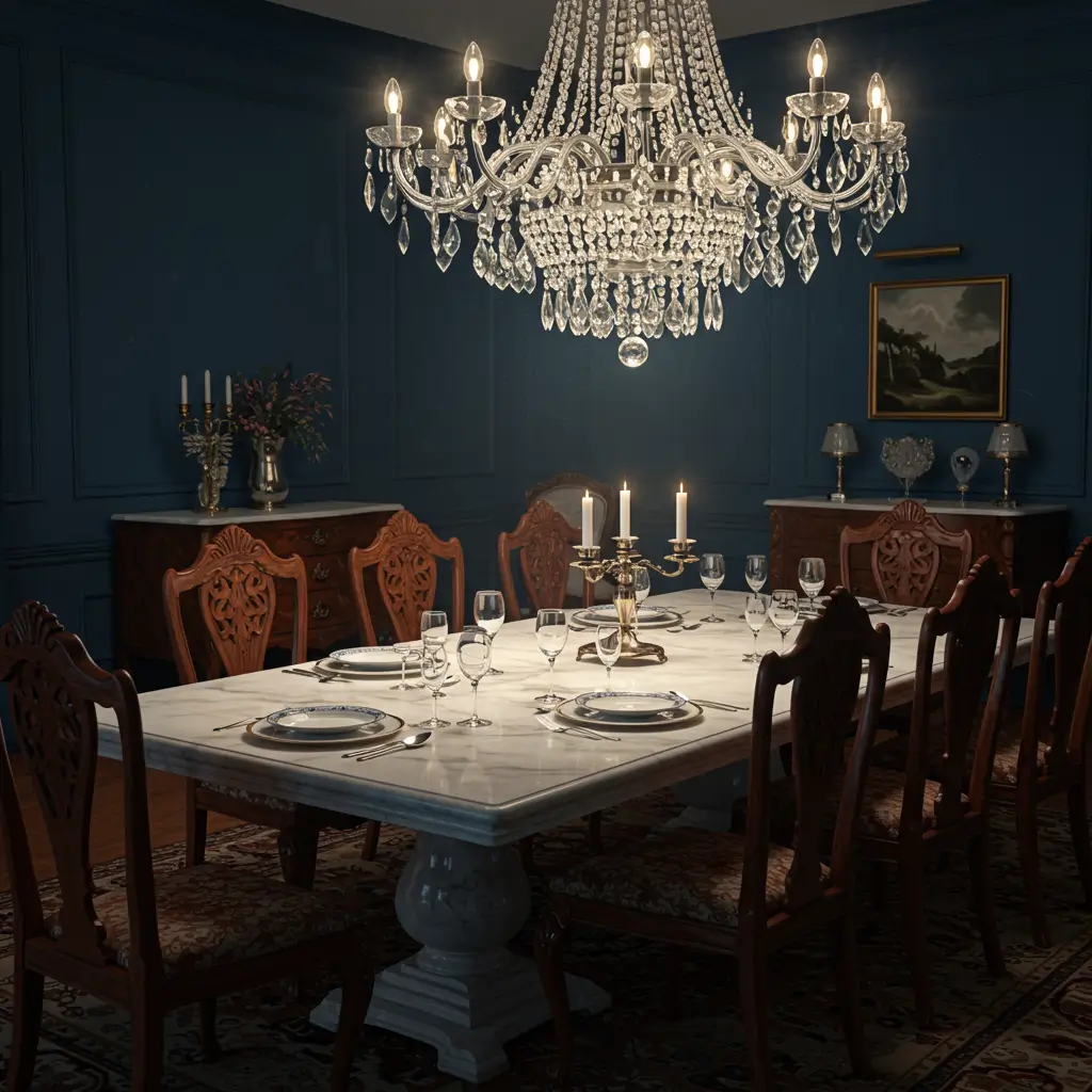 Formal marble tables deserve formal settings. Use charger plates, multiple forks, proper wine glasses, and napkins folded into actual shapes rather than just dumped on plates. Light candles in elegant holders. Play soft background music. Commit to the elegance.