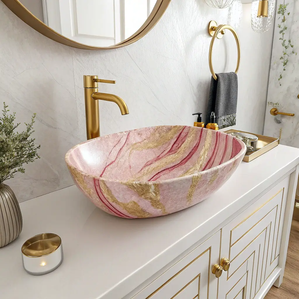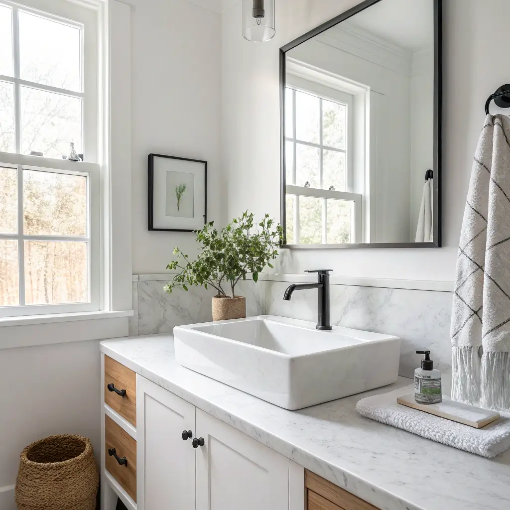 The key to making bold marble work? Keep everything else neutral. Let the marble sink be the superstar while walls, fixtures, and accessories play backup singers. Too many competing elements will turn your bathroom into a circus.