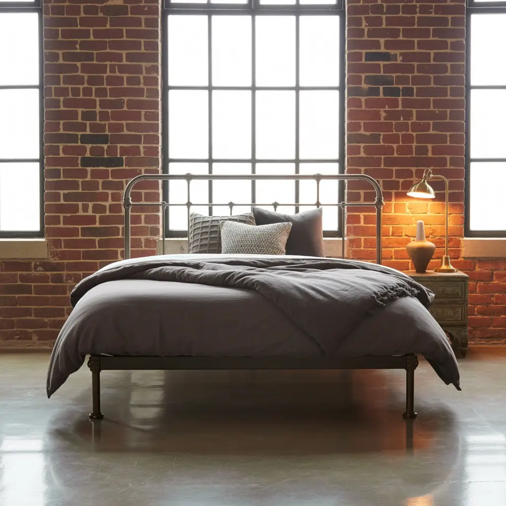 The magic of industrial decor? Imperfections become features. That scratched-up vintage trunk at your bed’s foot isn’t worn—it’s “distressed.” The uneven wall texture isn’t a flaw—it’s “character.”