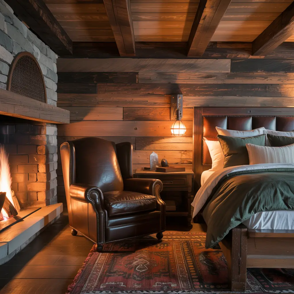 The rustic cabin bedroom brings mountain lodge energy to wherever you live. It’s masculine without trying too hard, cozy without being cutesy. Think less “hunting lodge cliché” and more “modern mountain retreat.”