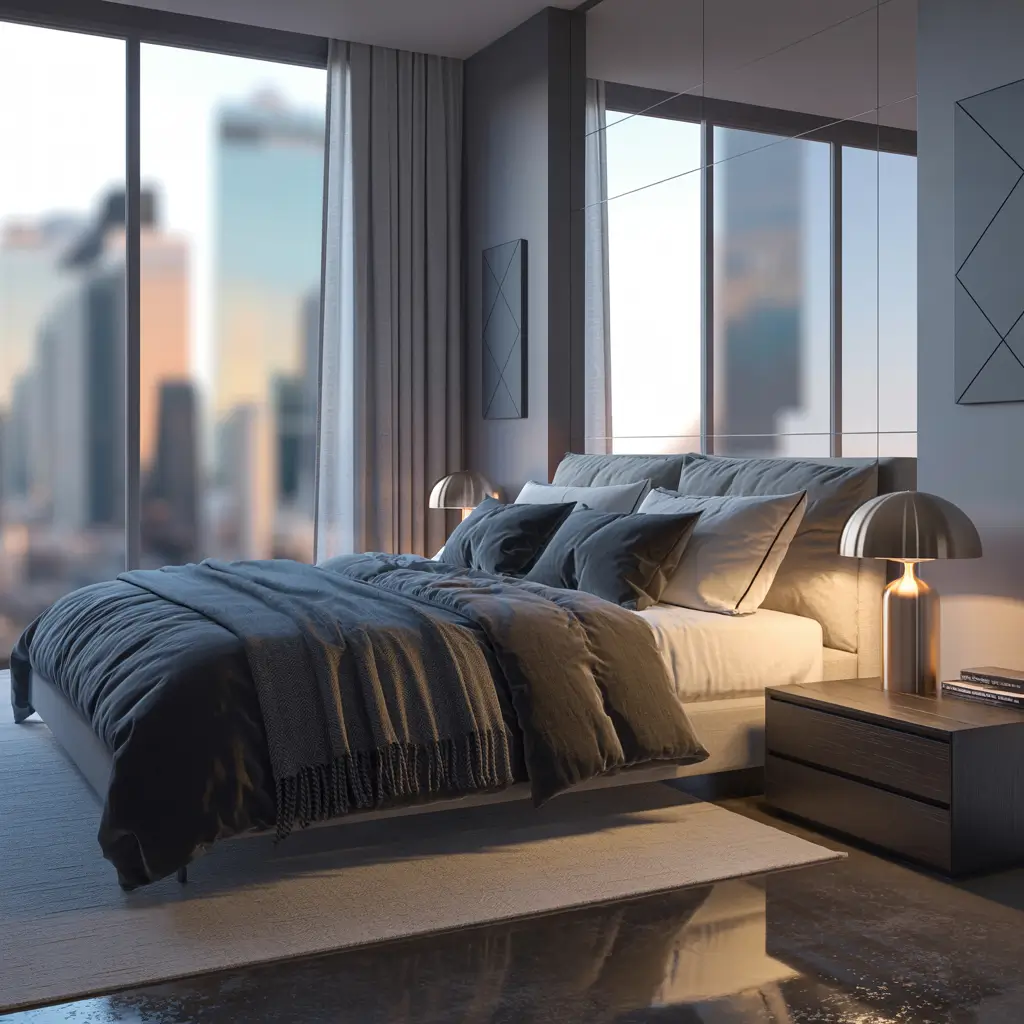 The sleek urban apartment bedroom embraces city living with style and efficiency. It’s sophisticated, space-conscious, and designed for real life—not just Instagram photos.