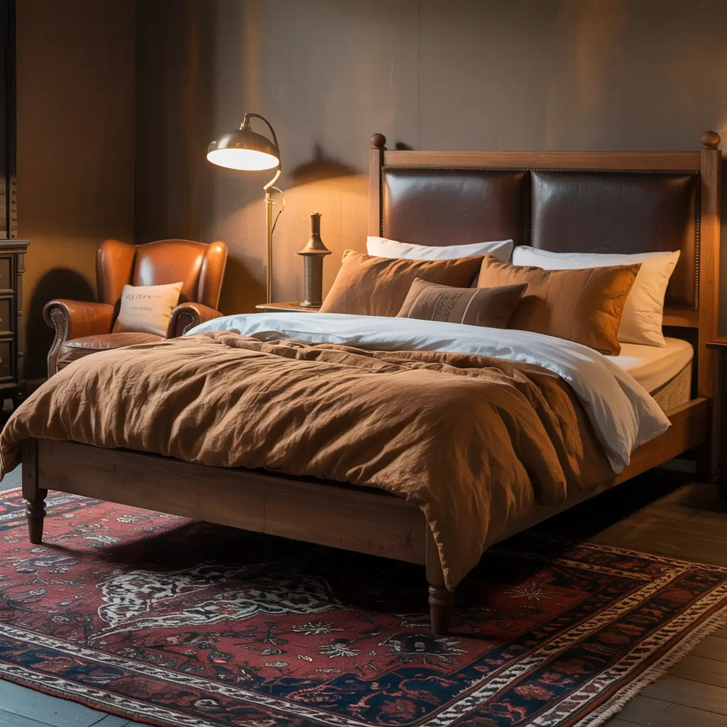 11. Vintage Leather & Wood Bedroom