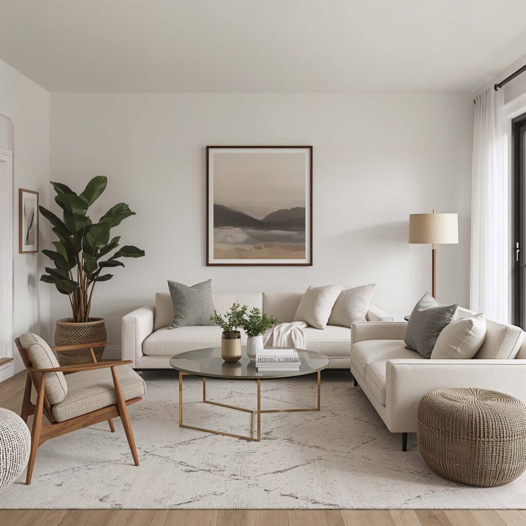 I’ve experimented with bold colors (hello, orange accent wall disaster of 2019), but I keep coming back to neutrals. They let the furniture shapes and textures take center stage. Plus, you can easily switch up your look with accessories without repainting everything.