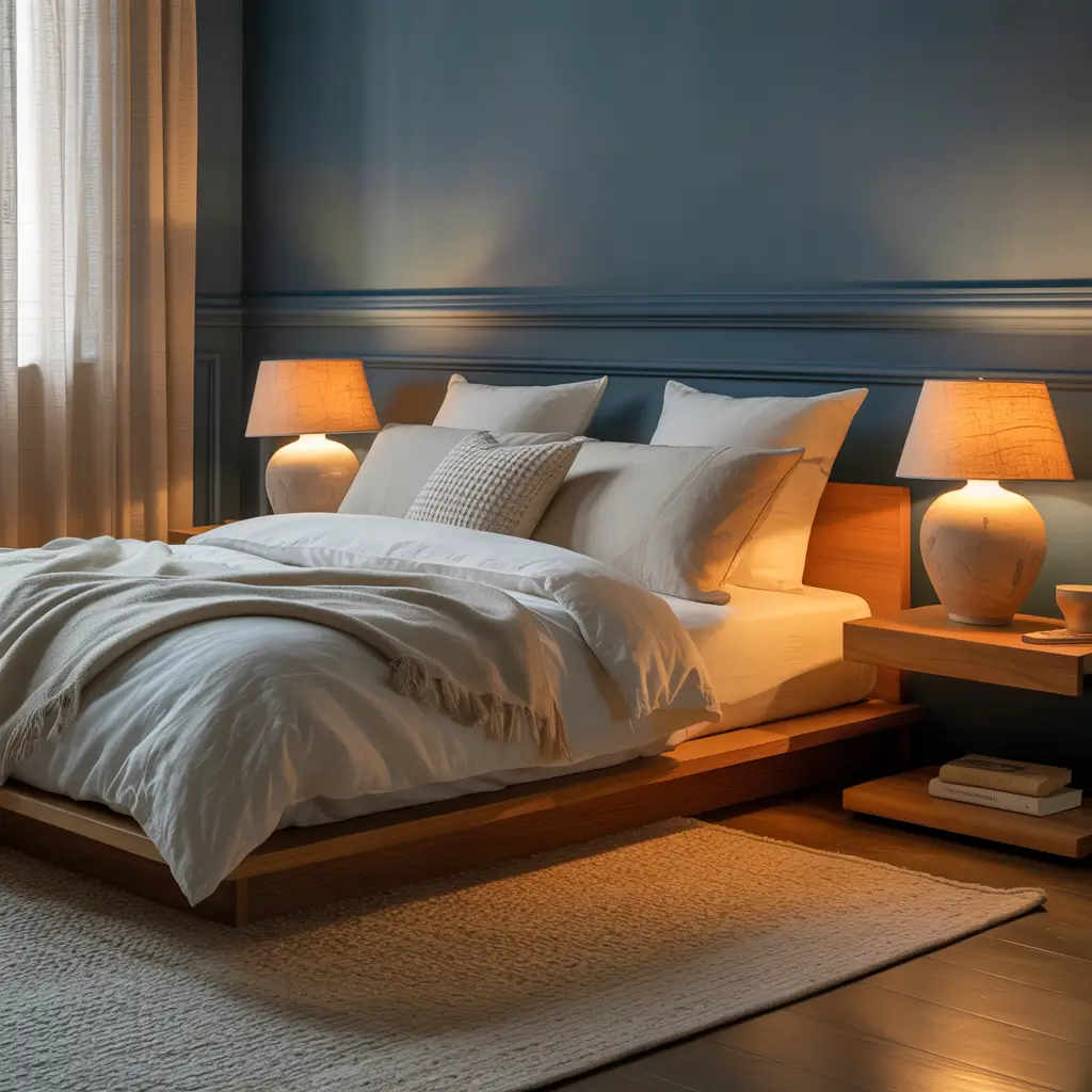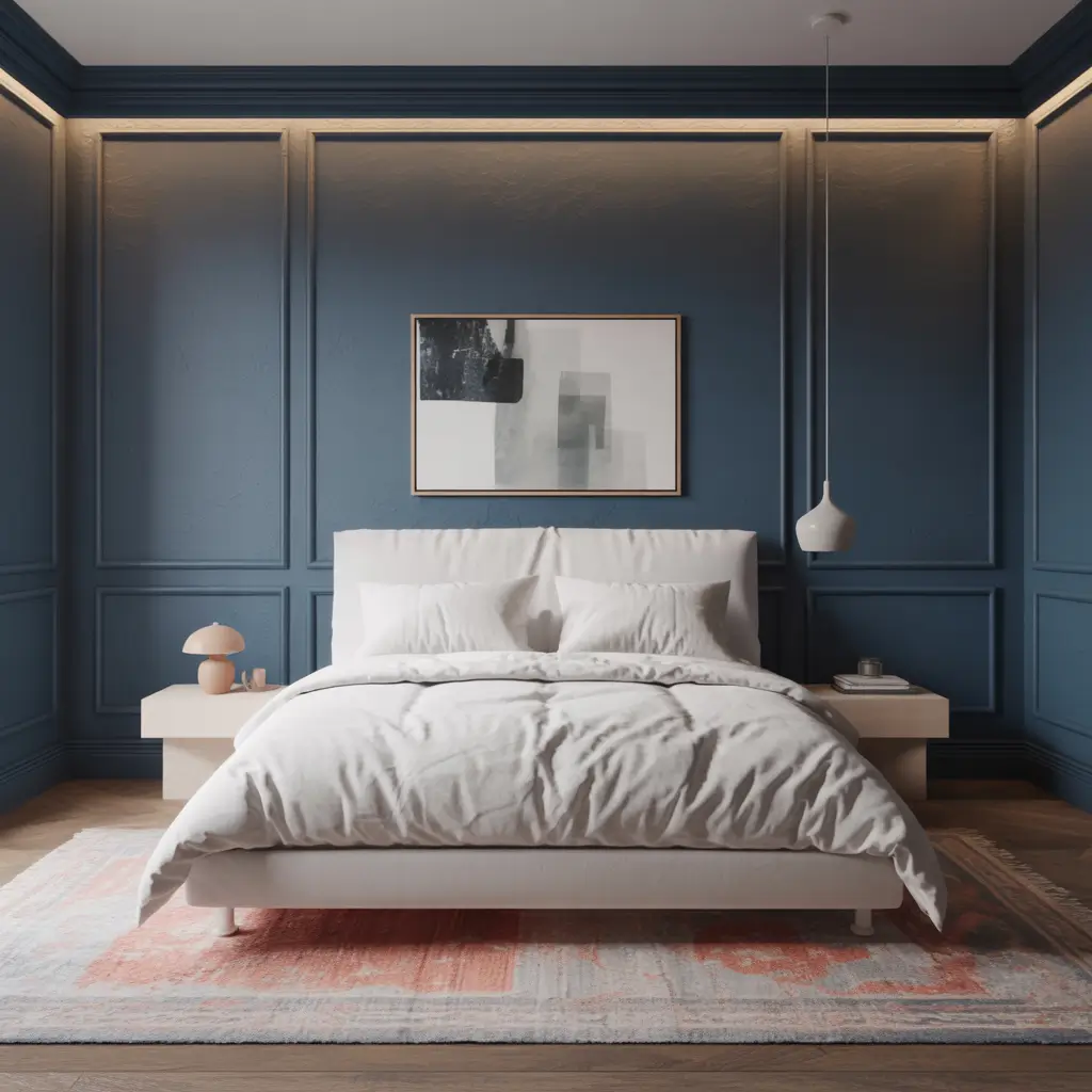 Midnight Blue Cozy Minimalist Bedroom