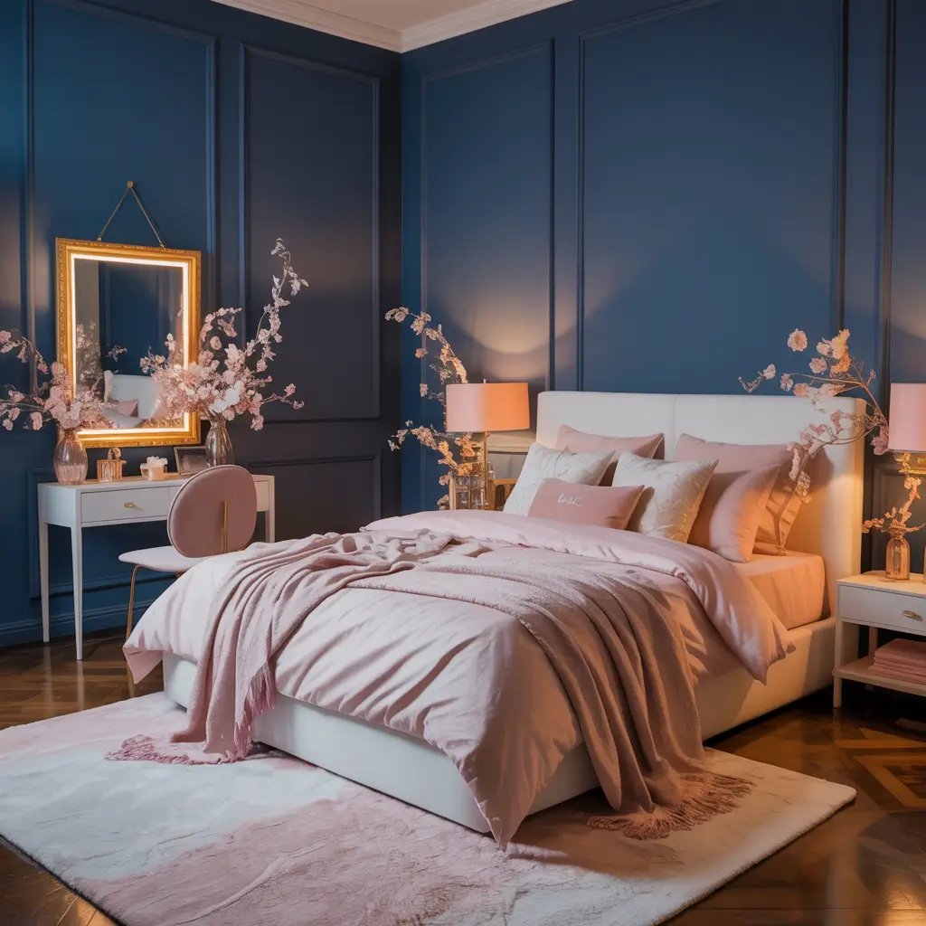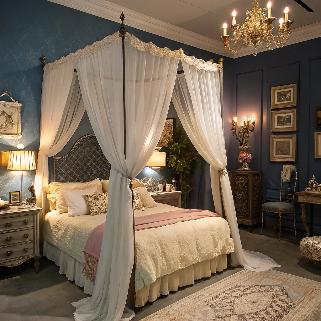 Canopy beds and midnight blue create the most romantic bedrooms imaginable. This combination feels like a luxurious cocoon perfect for escaping the world. I designed a canopy bedroom for my anniversary surprise, and my partner was completely blown away.