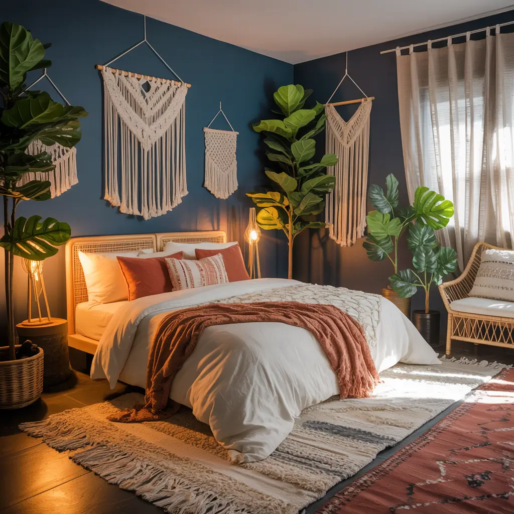 Midnight Blue Boho Chic Bedroom