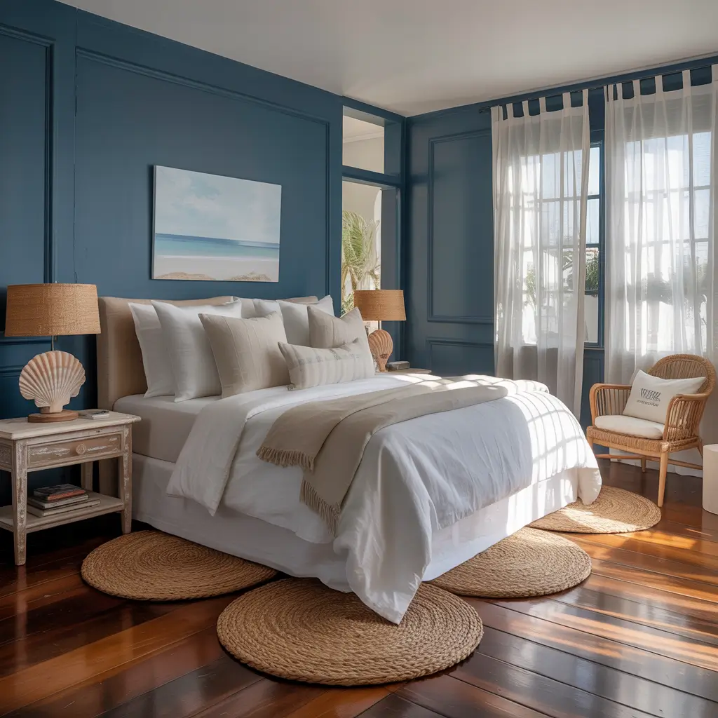 Midnight Blue Coastal Inspired Bedroom