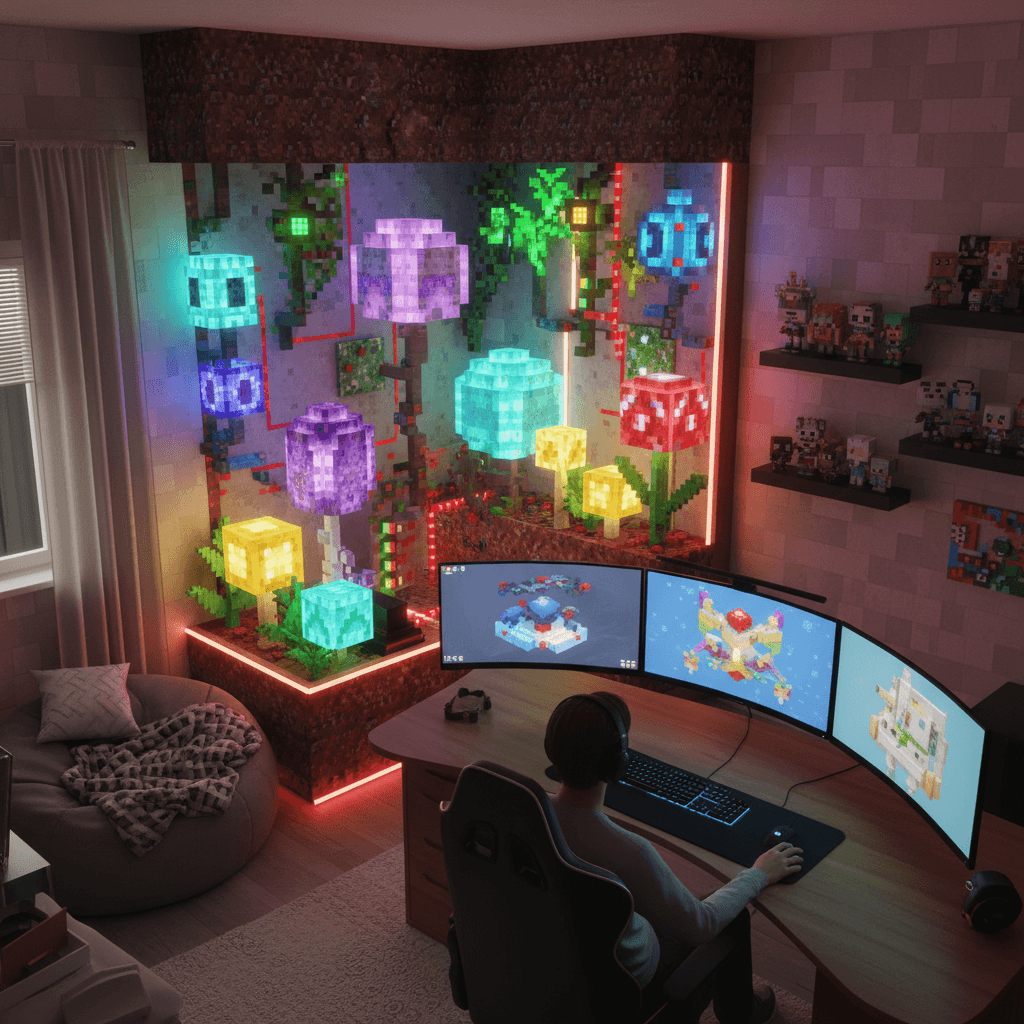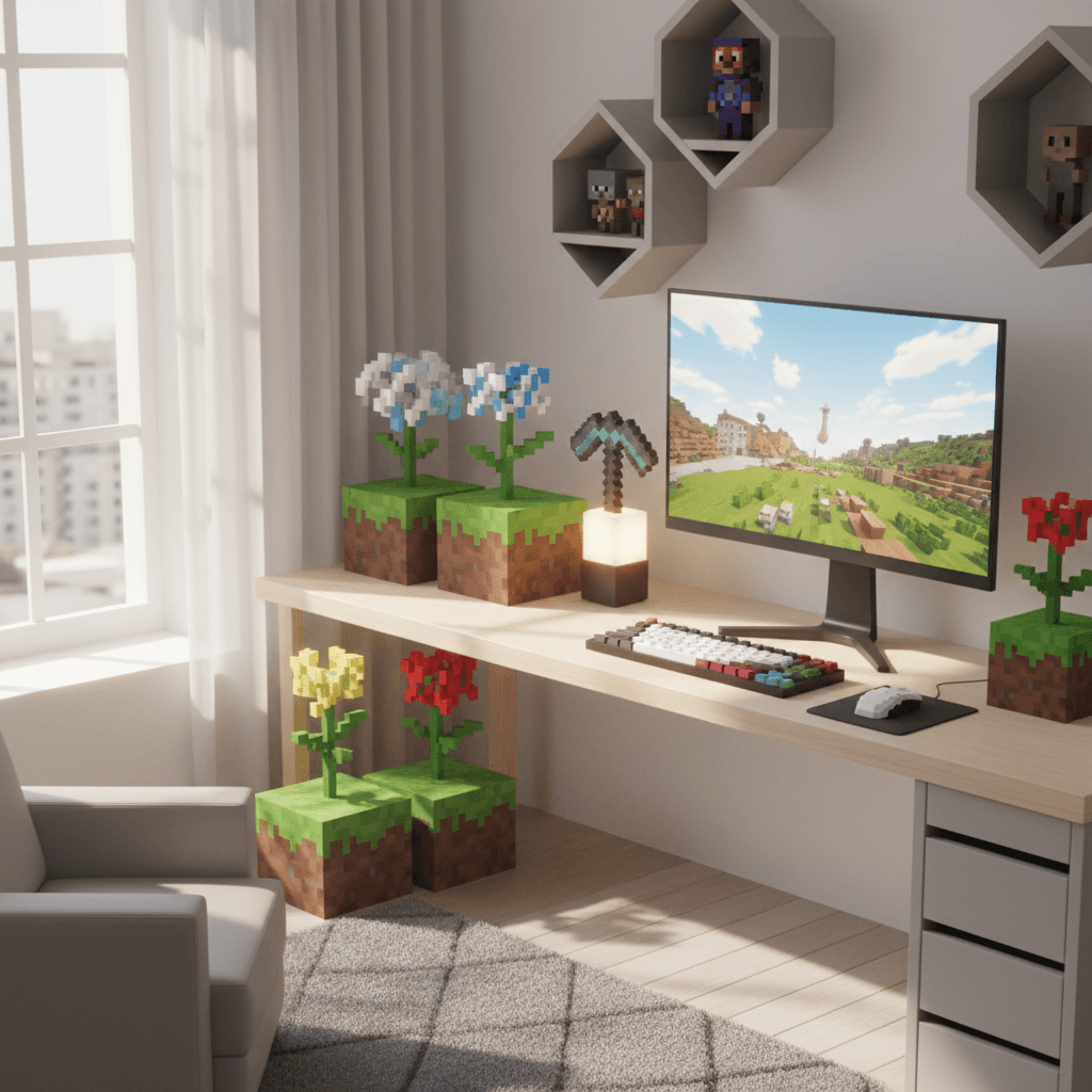 Mini biome cubes also work as room dividers, shelf decor, or hallway “art.” Ever walk down a corridor and feel like it needs personality? Put a desert cube next to a swamp cube and suddenly your hallway tells a story.