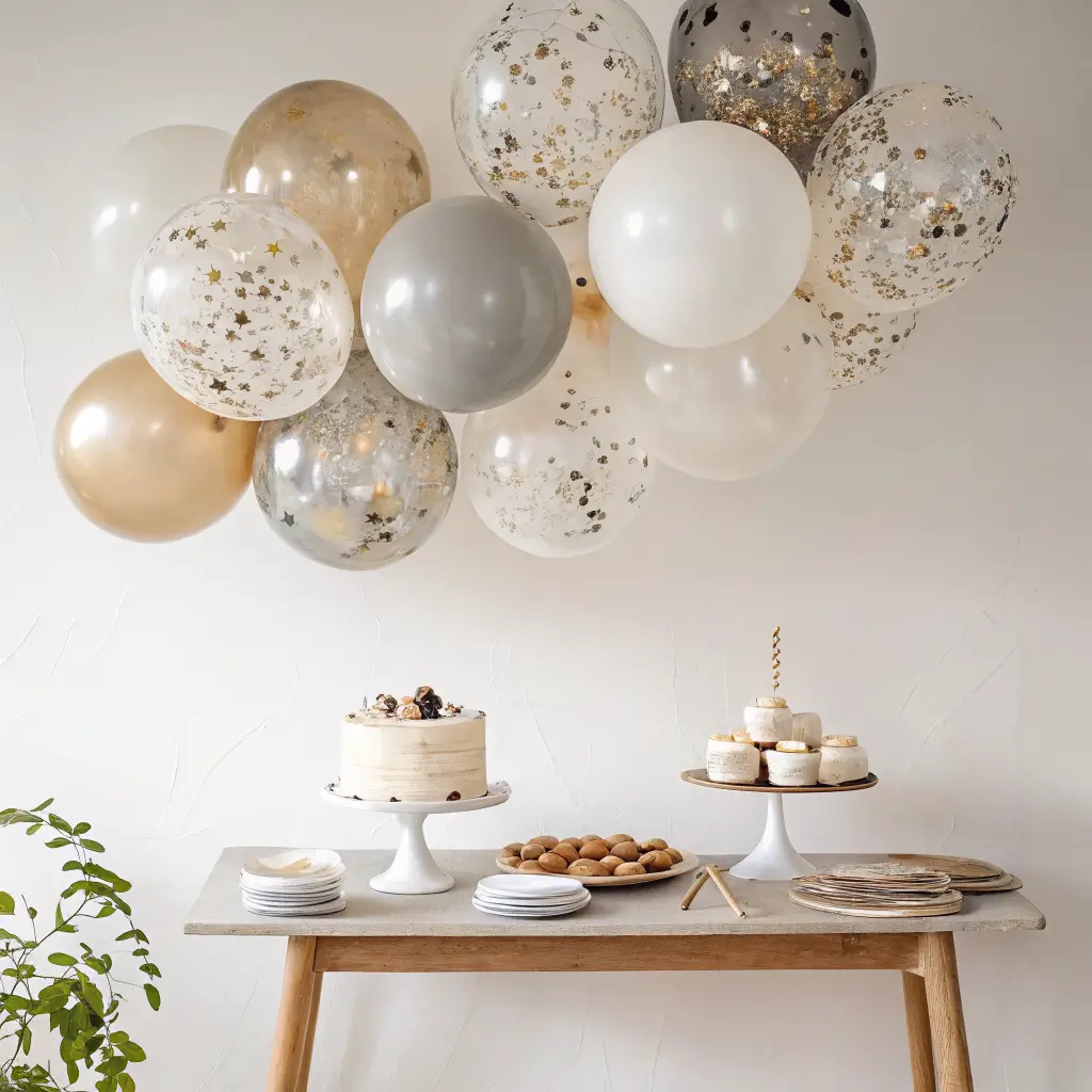 sleek monochrome balloon arch gives you instant impact without looking loud. If you choose one color family and stick to it, the result feels modern and sharp. Black, white, gray, beige, or even muted olive can work beautifully.