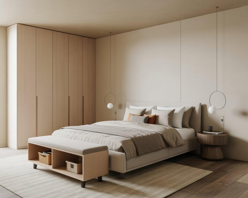My bedroom bench doubles as storage for extra bedding. Looks simple from the outside, but it’s secretly working overtime. That’s the kind of furniture that deserves space in a minimalist bedroom.