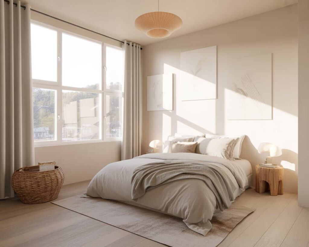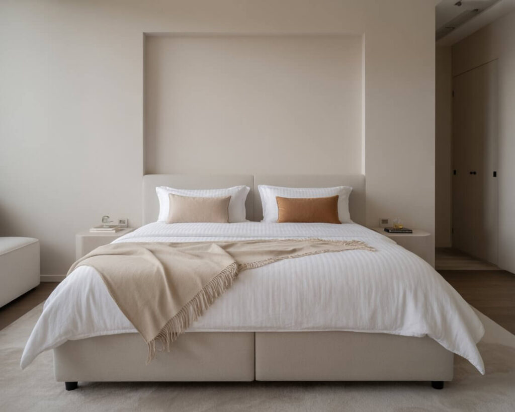 Choose solid colors or subtle patterns. Bold prints fight for attention in minimalist spaces—save your energy for more important battles. IMO, white or neutral bedding never goes out of style 🙂