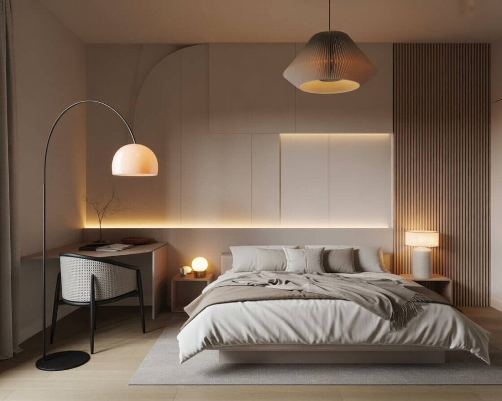 Good lighting makes or breaks a minimalist bedroom. Forget those generic ceiling fixtures—you need something with personality and purpose. A striking pendant light or sleek floor lamp becomes functional art.