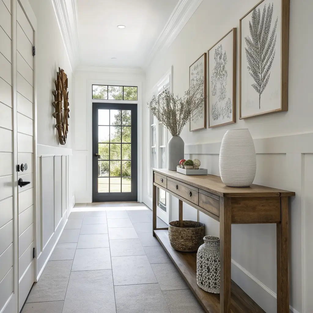 The statement piece philosophy guides entryway design. Choose one exceptional element – a stunning mirror, a quality console table, or an impactful artwork – and let it command attention. Everything else plays supporting role. My entryway features exactly one large mirror; that’s it. People remember it.
