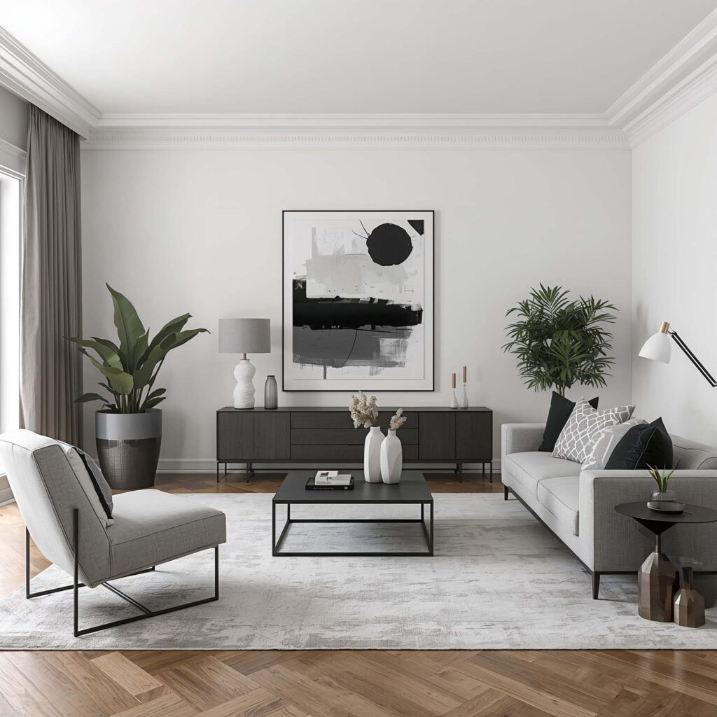 Minimalist Living Room with Art Statement Wall