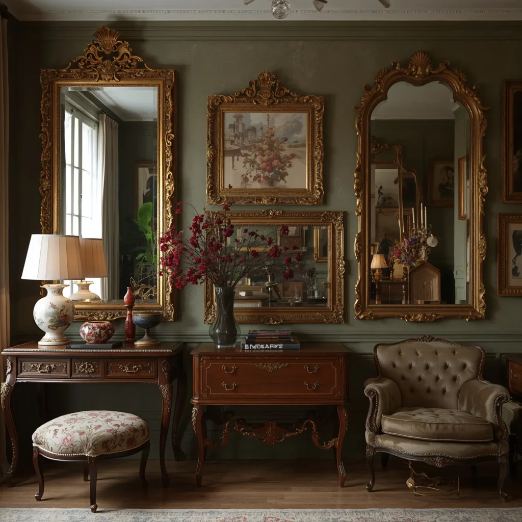 I scored my first vintage gold mirror at a thrift store for $20 (still bragging about it, tbh). The ornate detailing and that perfect patina? You can’t fake that character. The key is mixing different sizes and styles – don’t go matchy-matchy unless you want your place looking like a museum gift shop.