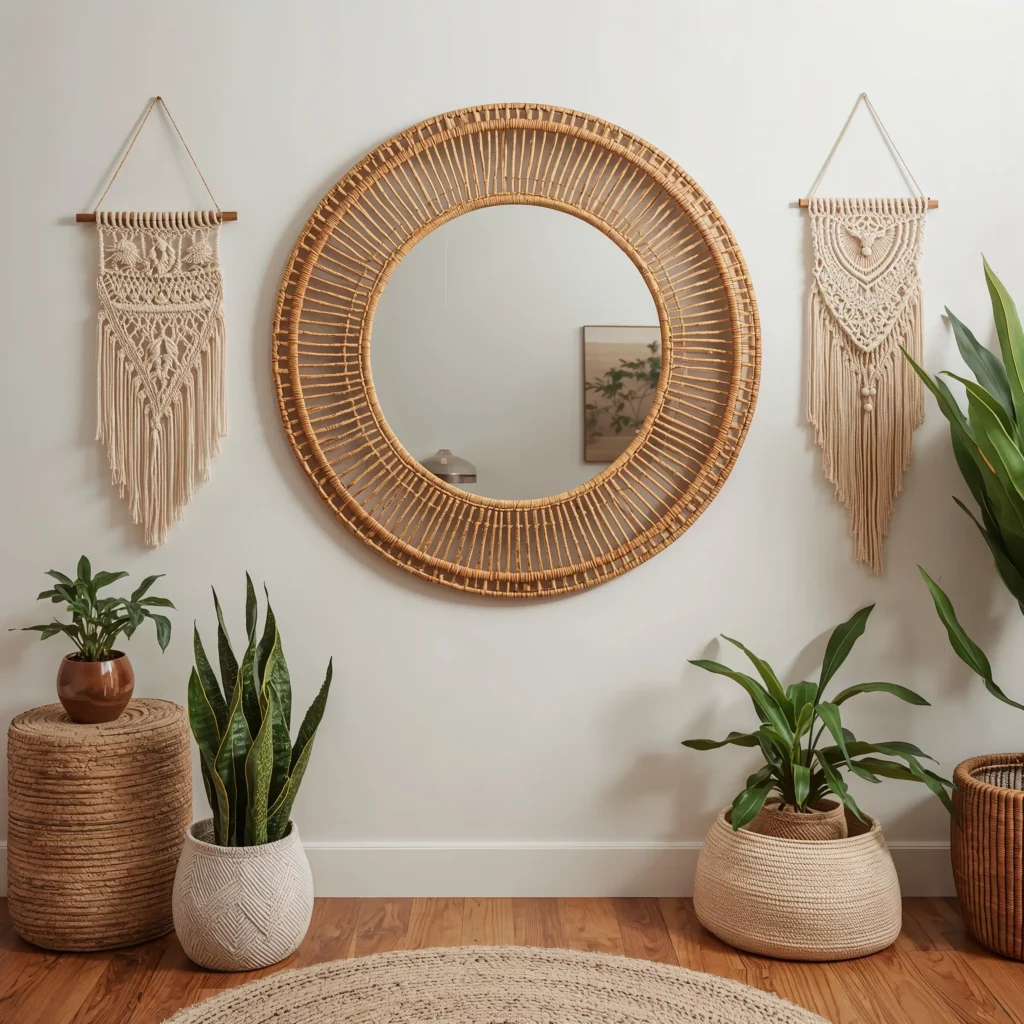 Let’s get a little groovy with boho rattan mirrors. These textured beauties bring natural warmth and that “I just got back from Bali” energy to any space. Rattan frames add dimension and visual interest without being too heavy or formal.