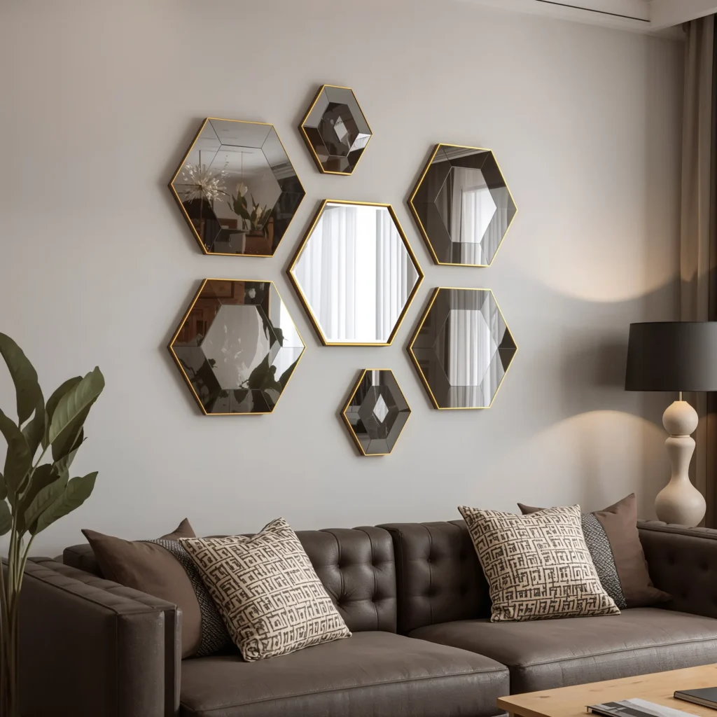Circles and rectangles are fine, but have you considered hexagons? Or octagons? Geometric mirrors bring unexpected shapes that make your walls way more interesting. I started with one hexagonal mirror and ended up creating an entire honeycomb pattern – no regrets!