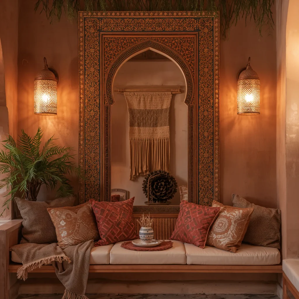 Transport your walls to Marrakech with a Moroccan arch mirror. These beauties feature that distinctive keyhole or arch shape that instantly adds exotic flair. I bought one on a whim, and now my bathroom feels like a riad – minus the fountain, unfortunately.