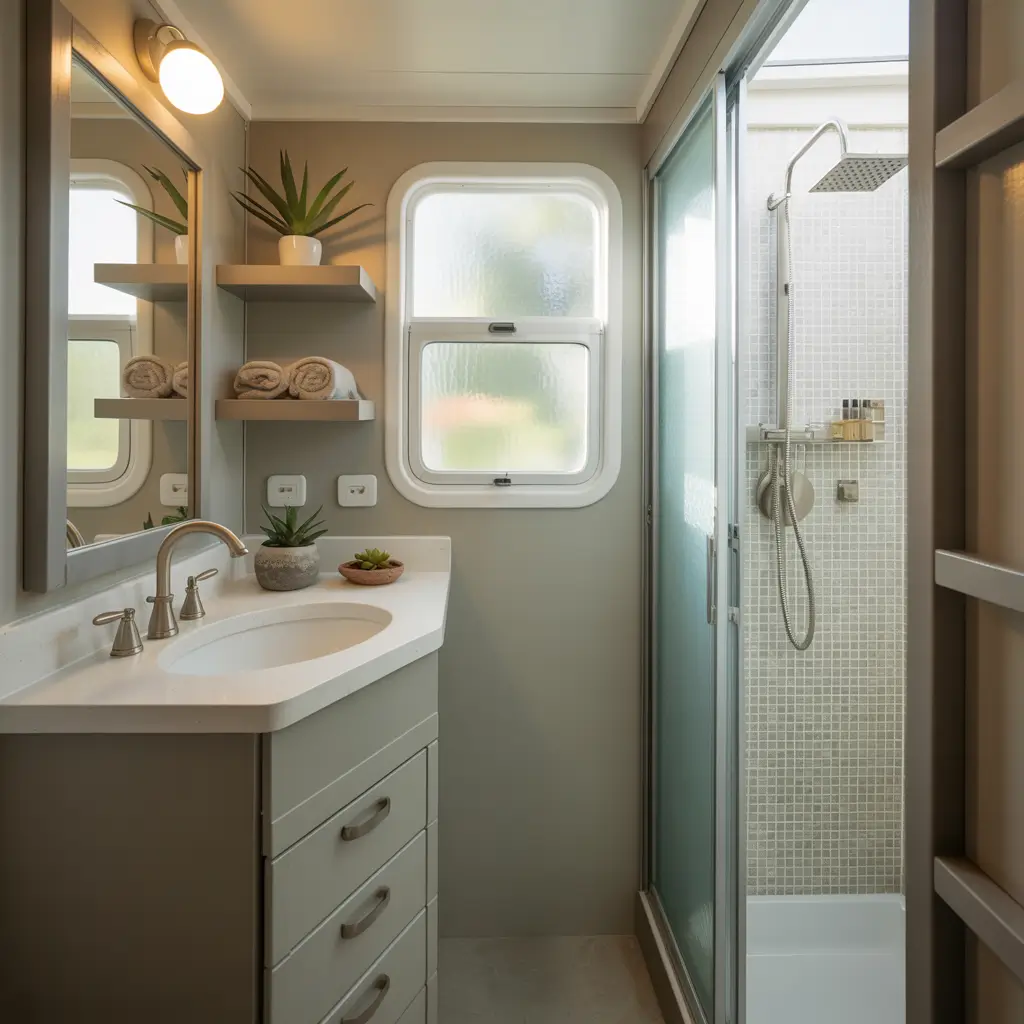 Mobile home bathrooms have unique layout challenges because you can’t just knock out walls like in a traditional house. The structure doesn’t work that way. But you can absolutely rearrange and optimize what you’ve got.