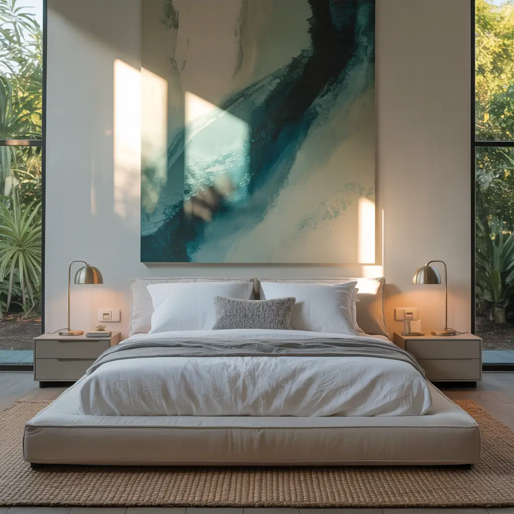 I discovered this firsthand when I hung a massive abstract print above my bed. Suddenly, the whole room had a focal point that tied everything together. The key is going big—seriously, bigger than you think you need.