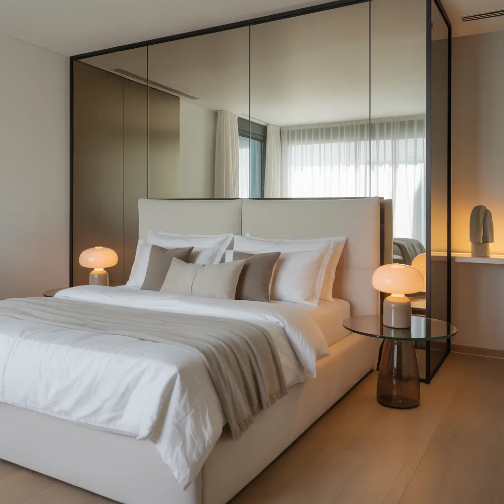 Modern Bedroom with Glass and Mirror Elements