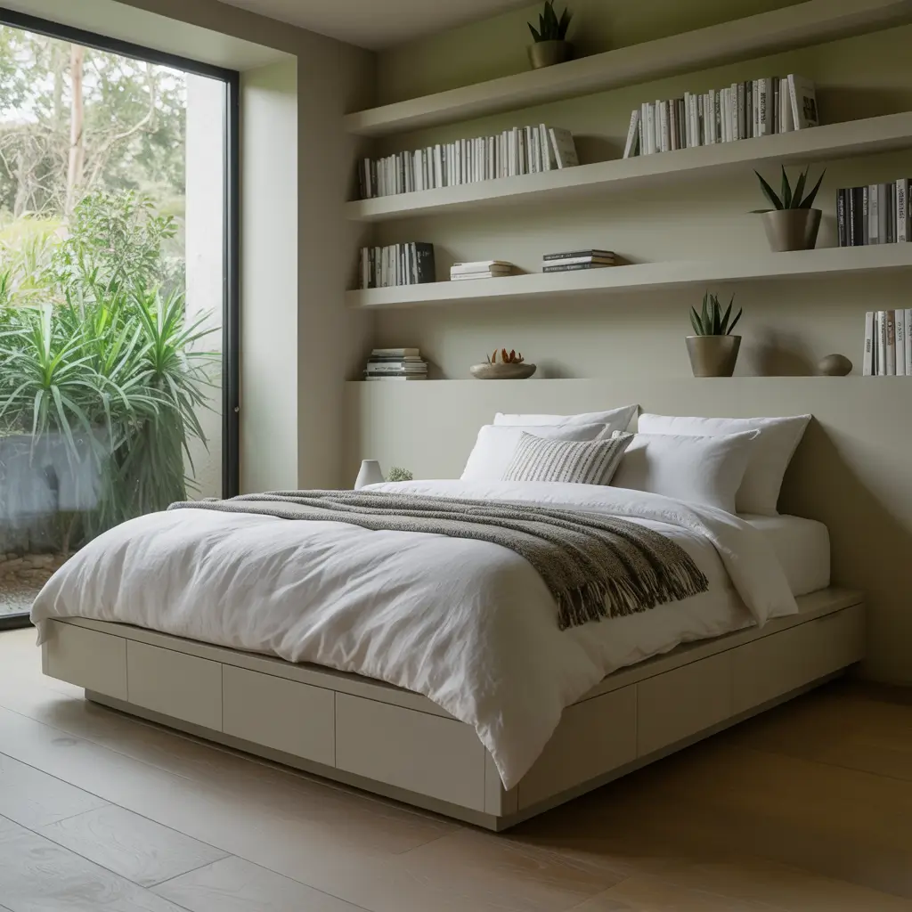 - Platform beds with built-in drawers for seasonal clothing