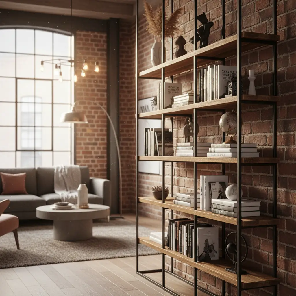 The industrial modern mix requires balancing rough and smooth. I pair metal pipe shelving with pristine book arrangements, raw wood with organized displays. This controlled contrast prevents your room from looking like an actual warehouse.