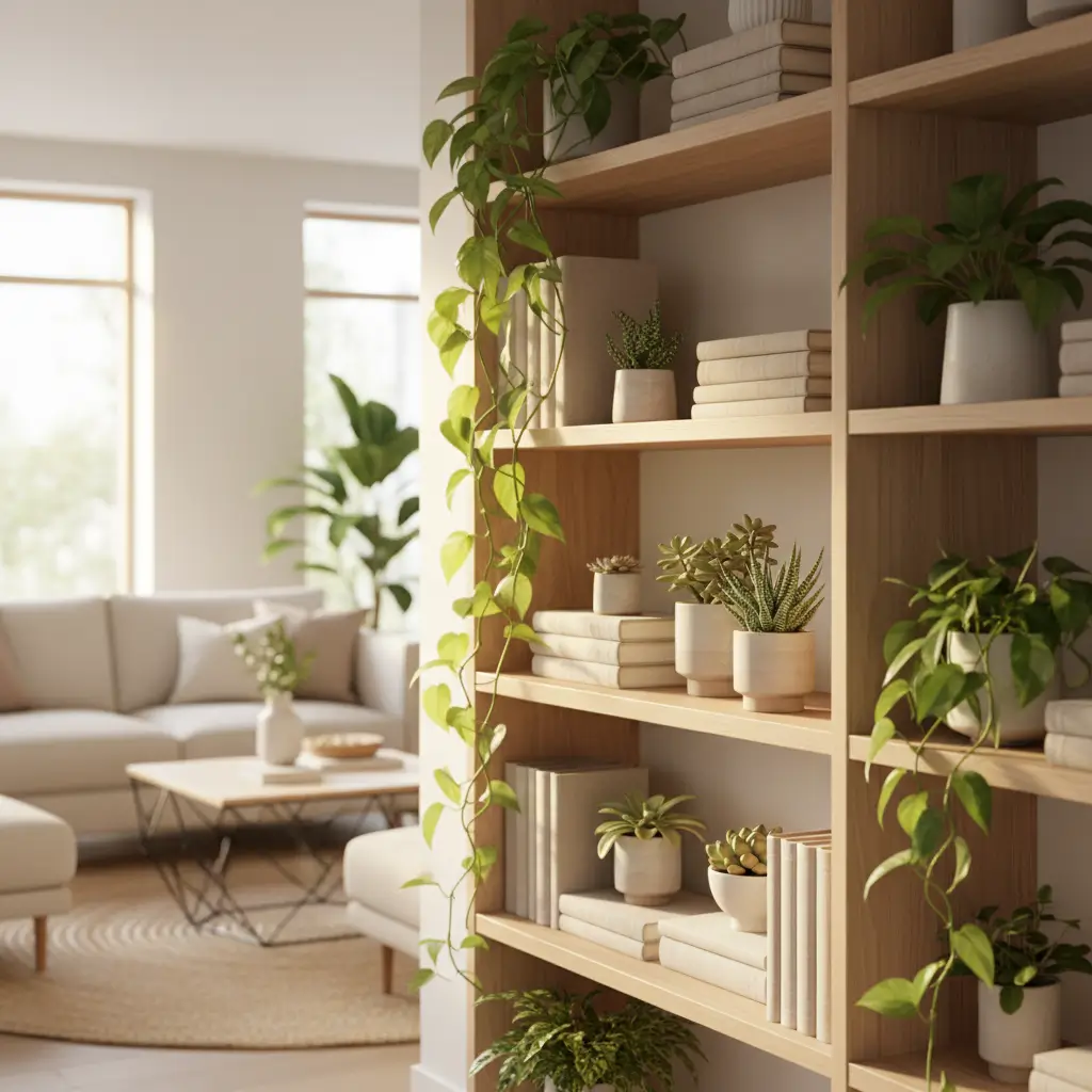 • Choose low-maintenance plants (pothos, snake plants, ZZ plants)