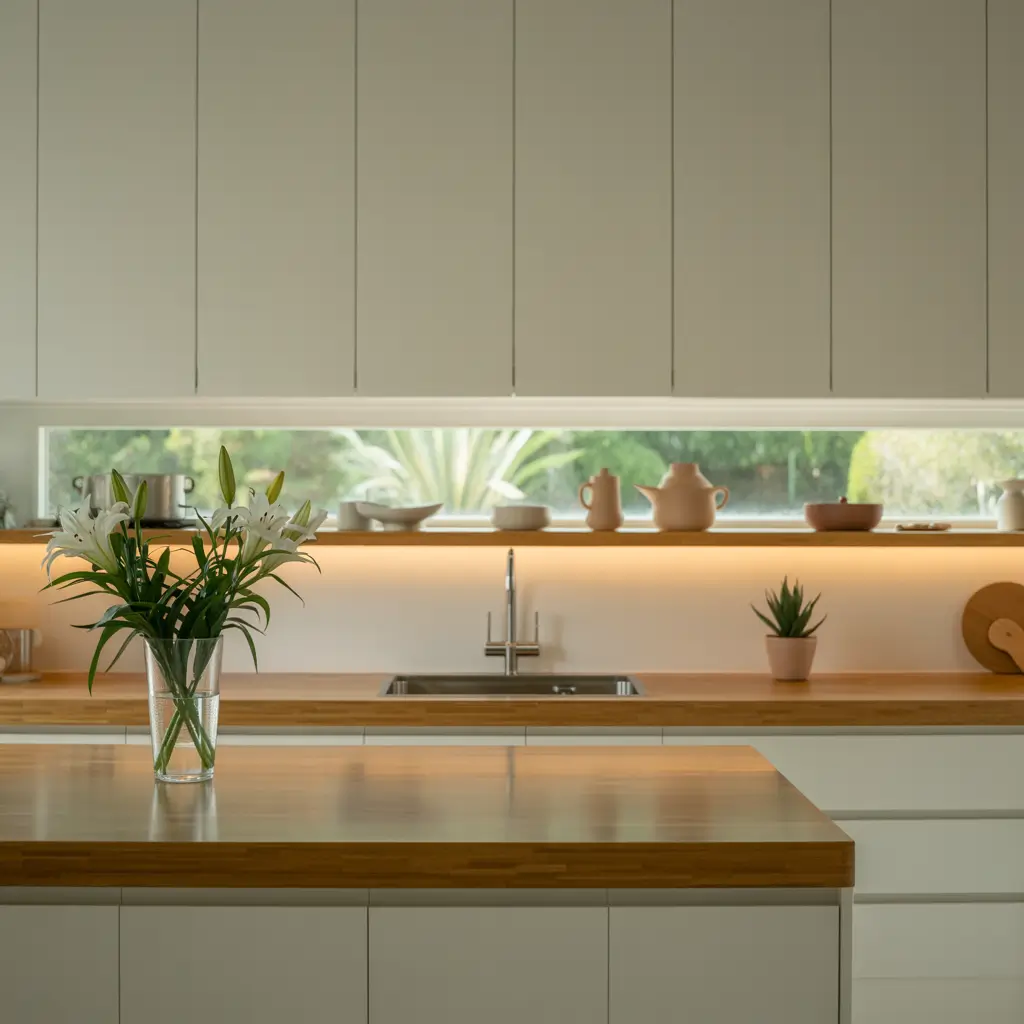Sleek cabinet designs – think handleless, flat-panel doors – can feel austere without the right lighting. But add soft ambient lighting, and those same cabinets become the backdrop for a warm, inviting space.