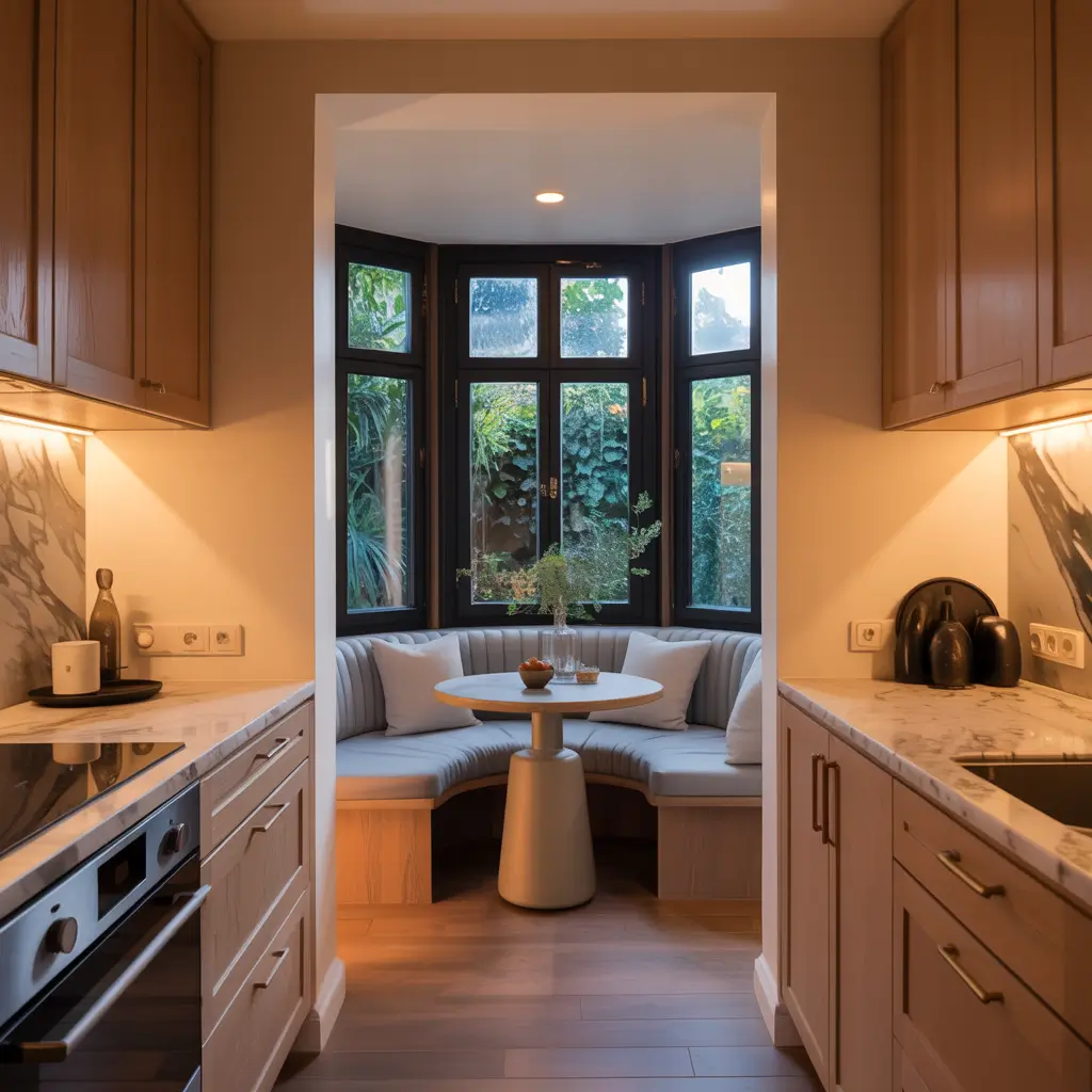 Built-in banquettes work miracles in tight spaces, providing seating and hidden storage. Even a simple bar-height counter along a wall creates an eating nook. The trick? Make these spaces irresistible with good lighting, comfortable seating, and personal touches.