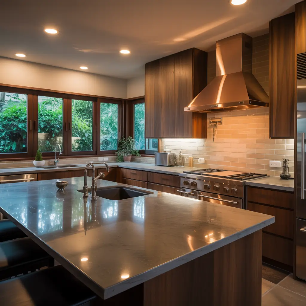 Choose stones with warm undertones – creamy marbles, honey-colored granites, or earthy soapstone. Pair with woods in similar warm tones for cohesion. The contrast between stone’s coolness and wood’s warmth creates perfect balance. I love how honed finishes on stone feel more approachable than high-polish surfaces.