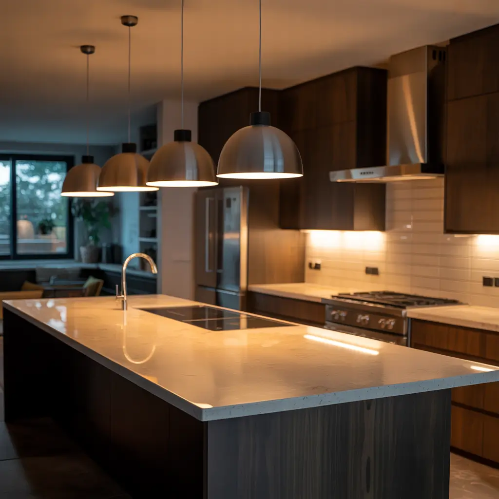 The magic happens when you layer these elements and put them on dimmers. Suddenly, your sleek kitchen transforms with the flip of a switch.