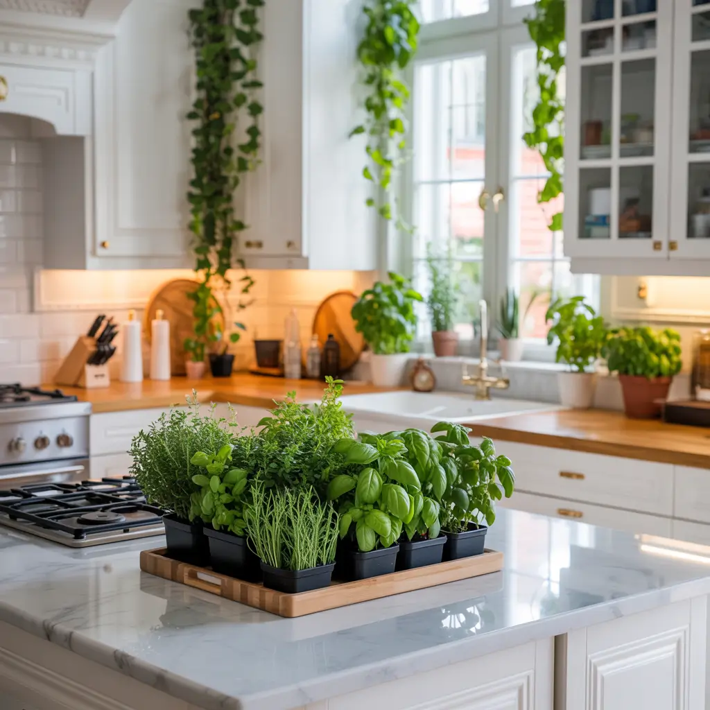 Nothing breathes life into a modern kitchen quite like plants and greenery. They add color, improve air quality, and create that lived-in feeling that makes spaces truly cozy. Plus, having herbs at arm’s reach makes even simple cooking feel gourmet.