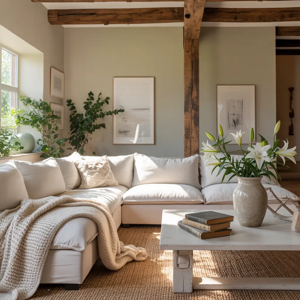- Warm white walls (Benjamin Moore’s White Dove is perfect)