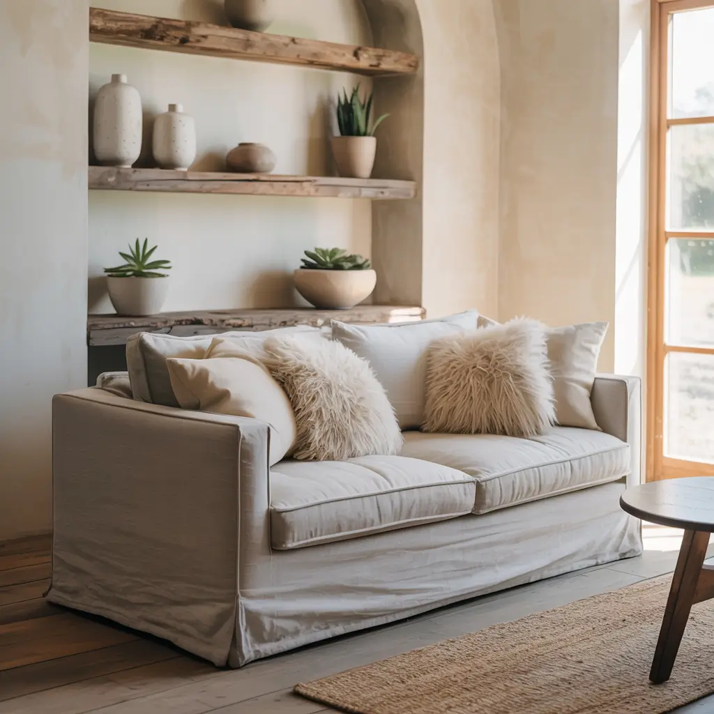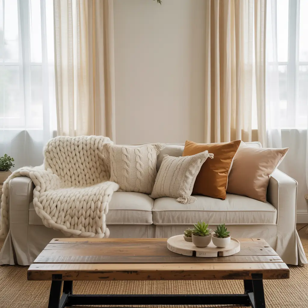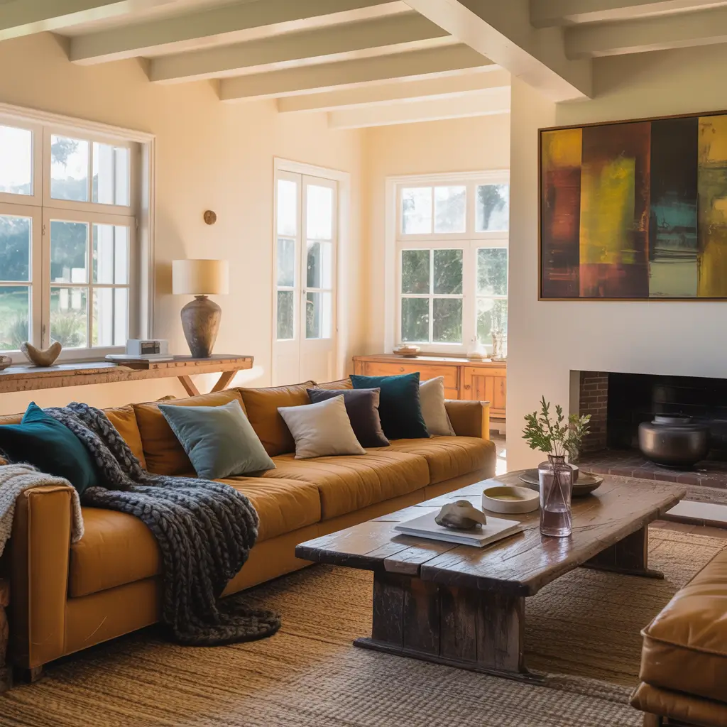 My living room layers jute, linen, wool, wood, leather, and cotton throughout. Each texture catches light differently and adds visual weight that makes the space feel complete. Natural textures also age beautifully, getting better over time.