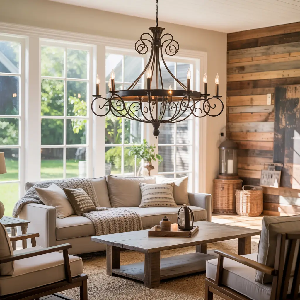 Lighting transforms rooms more than any other element. Statement lighting in modern farmhouse living rooms serves as functional art that defines the space’s entire personality.