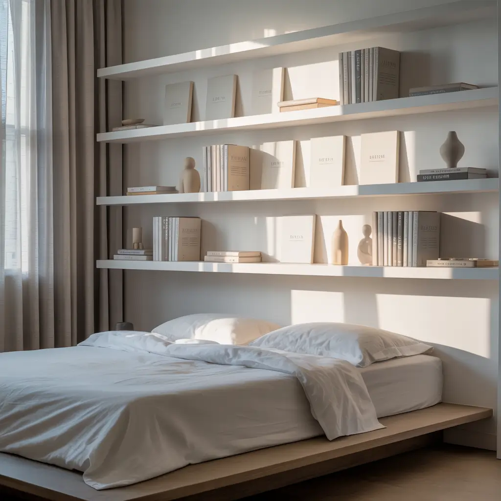 Small bedrooms need big solutions, and minimalist floating shelves deliver without eating up precious square footage. I installed ultra-thin white shelves in my guest room, and suddenly that cramped box feels twice as big.