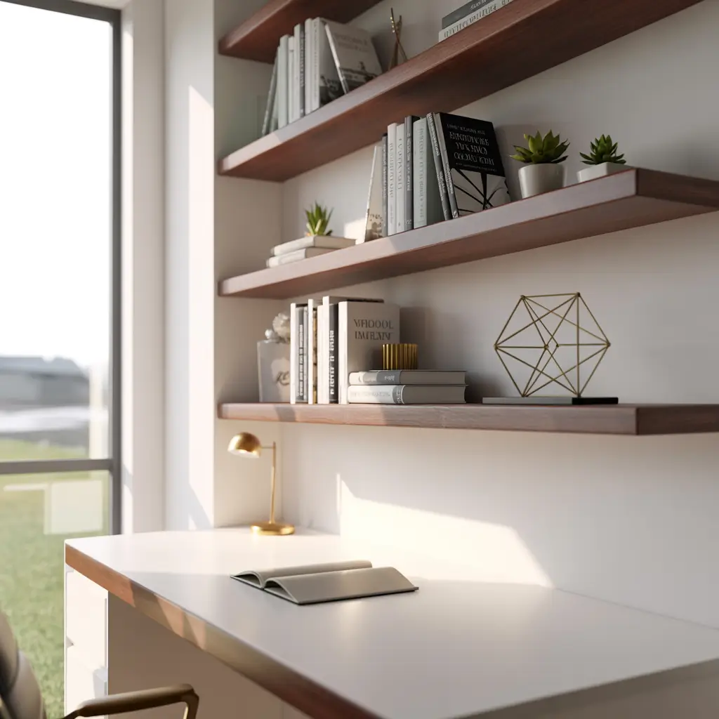 Home office floating shelves are the productivity hack nobody talks about. I installed shelves above my desk, and suddenly everything I need is within arm’s reach without cluttering my workspace.