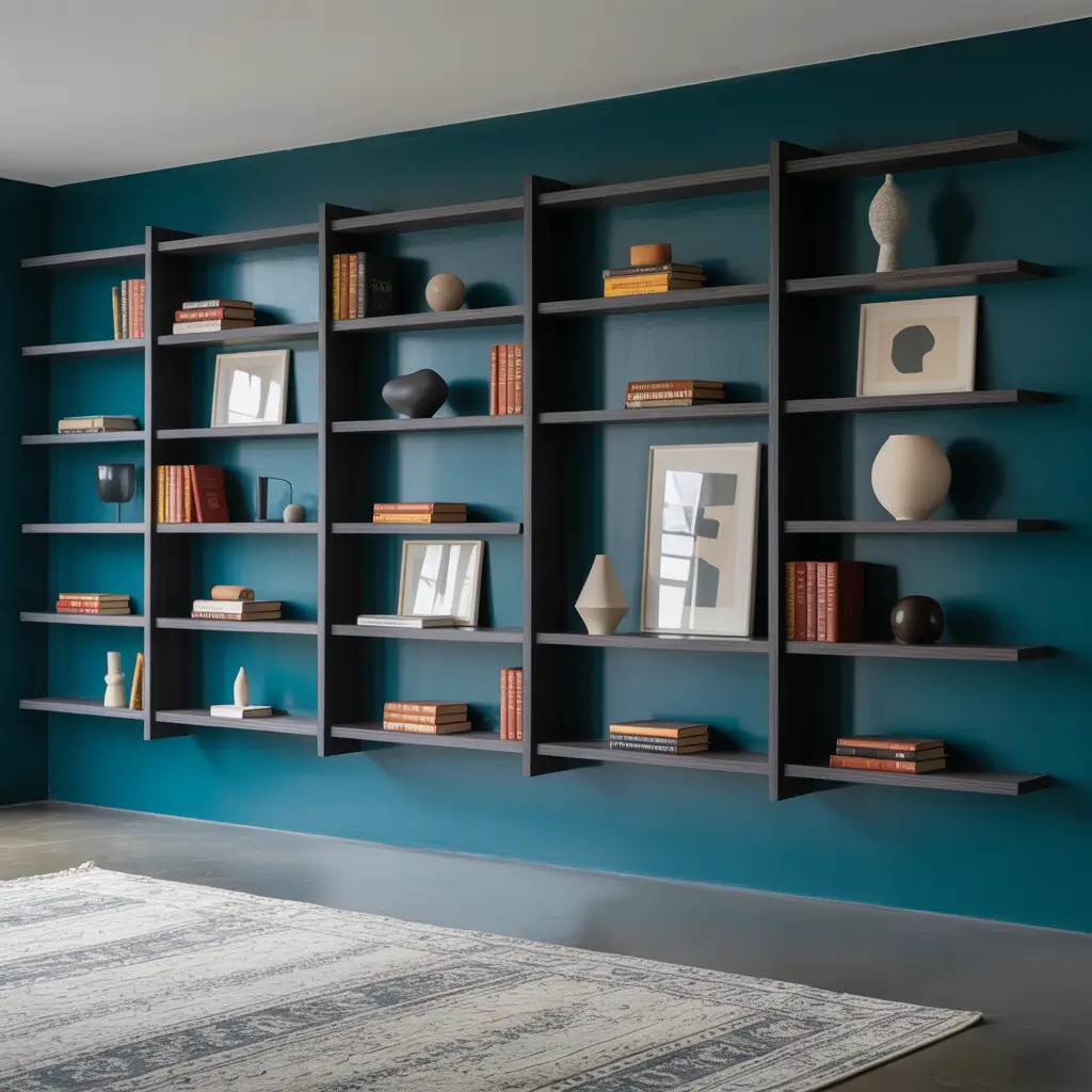 Leave strategic gaps instead of covering every inch. Some empty wall space prevents the shelves from overwhelming the room. I left a 12-inch gap in the middle for artwork, breaking up the shelving nicely.