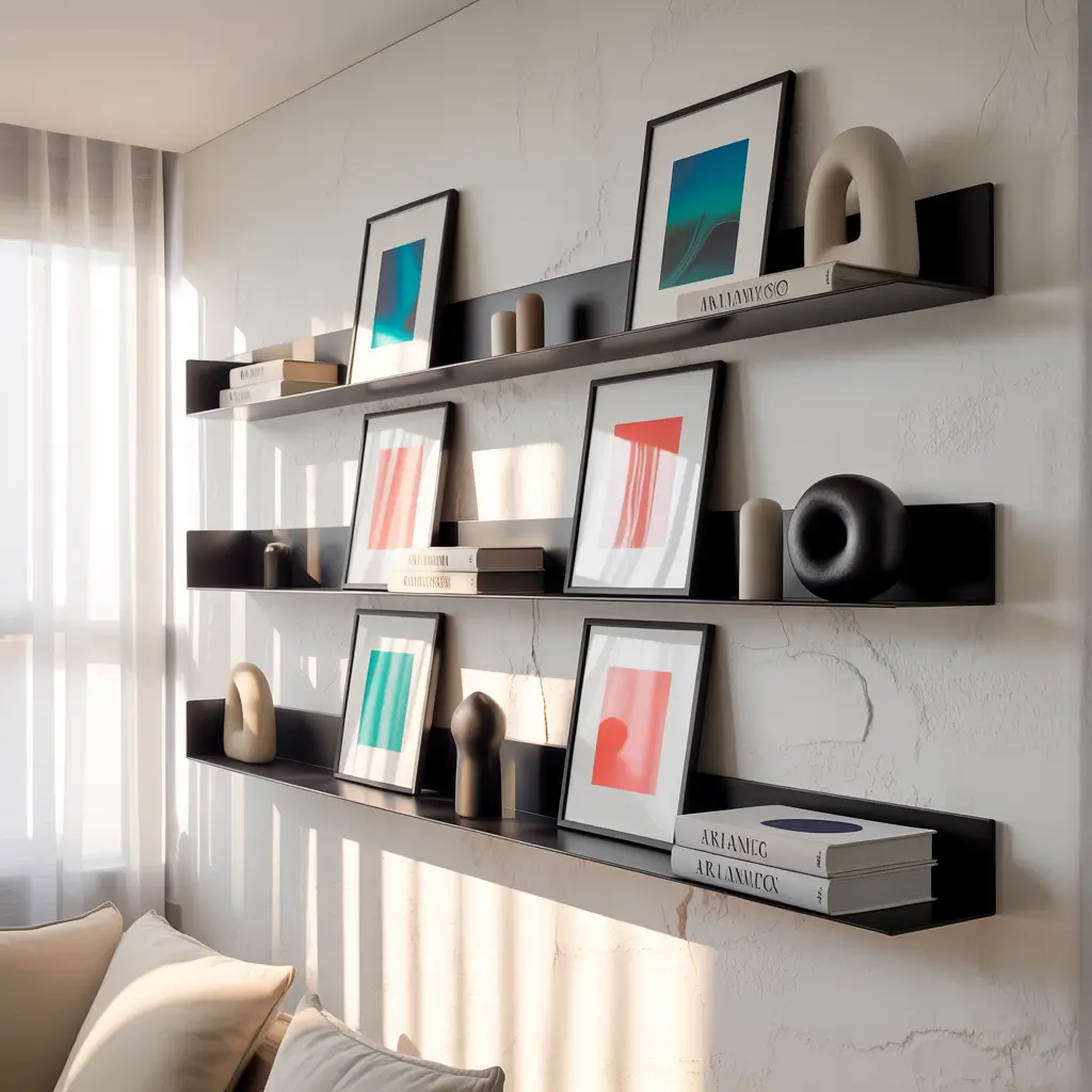 When you need serious storage, multi-level floating shelves deliver without the bulk of traditional furniture. I installed a floor-to-ceiling multi-level system in my small apartment, and it holds more than my old bookcase while taking up zero floor space.