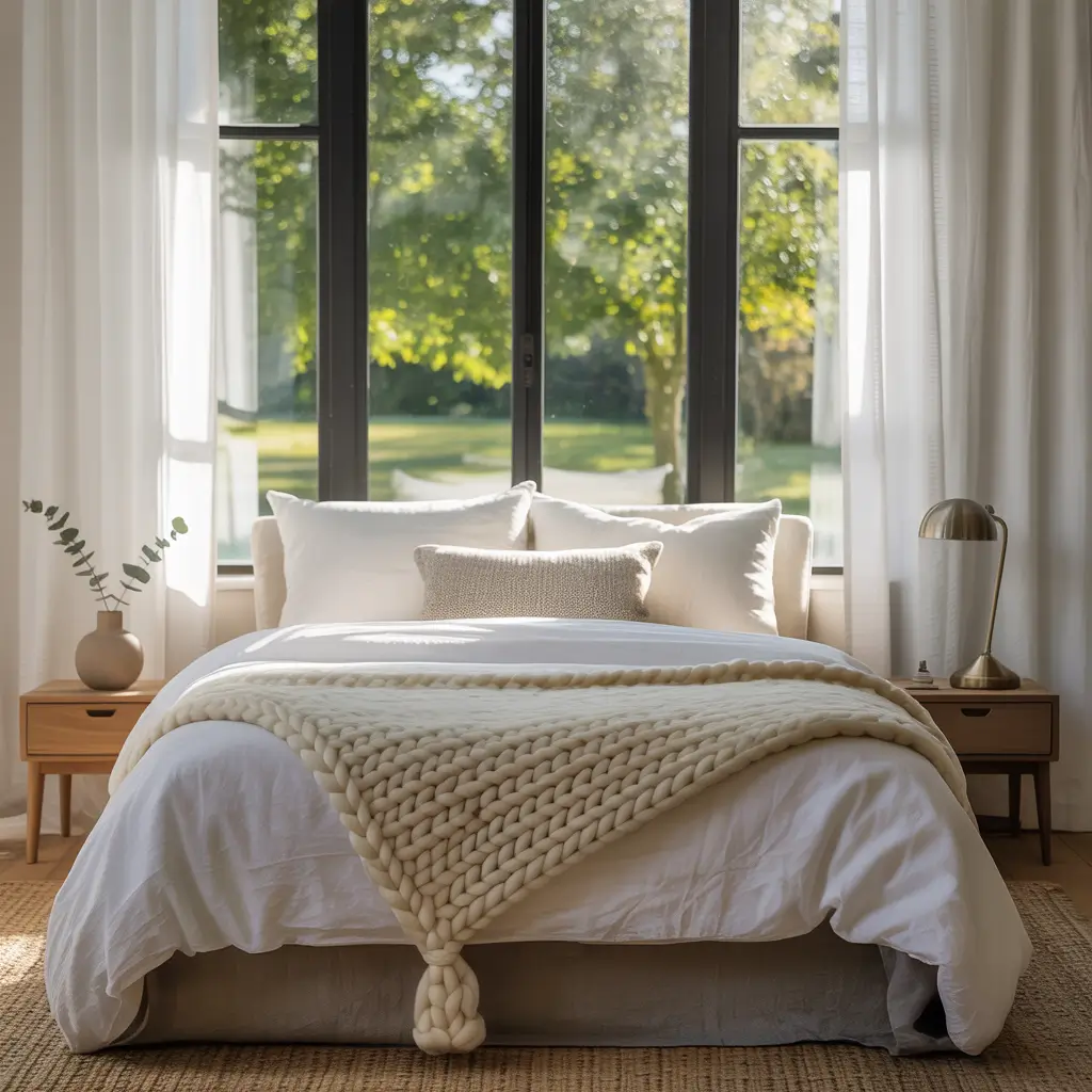 - Layers of natural textiles (linen sheets, wool throws, cotton rugs)
