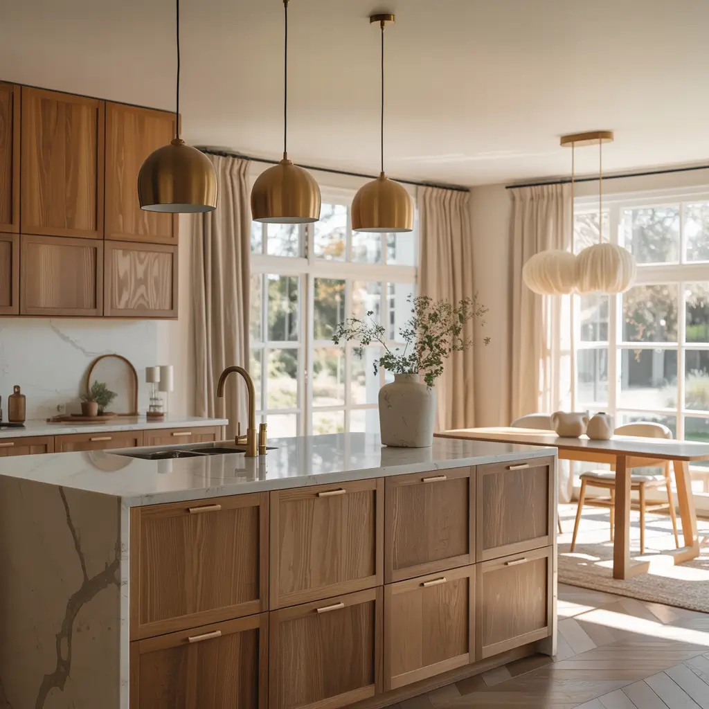 Warm Wood and Marble Open Kitchen