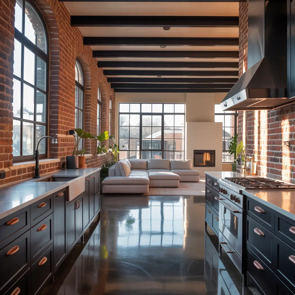 Industrial Modern Kitchen with Exposed Beams