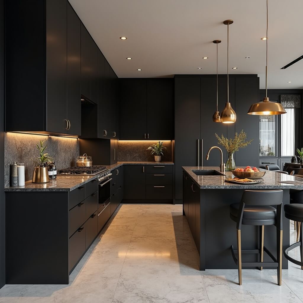 Black and Gold Luxury Open Kitchen