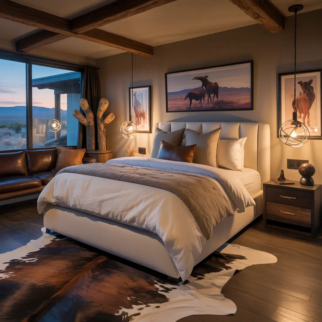 • Animal Hides (Faux or Real): A faux sheepskin throw on the bed or a cowhide rug on the floor adds an essential, authentic Western texture.
